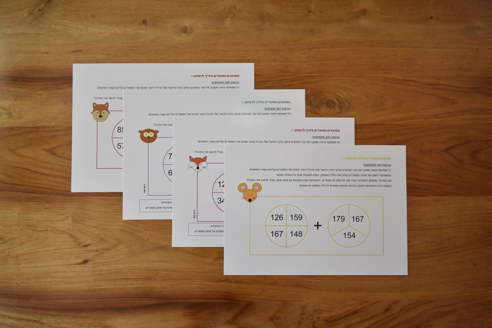 תרגילי חיבור ברמות קושי שונות. הערכה כוללת 4 לוחות משחק מודפסים , צבעוניים עם למינציה. עוד בערכה 4 לוחות מסלול בהדפסה רגילה + 4 דפי תיעוד למשתתף יחיד + דף תיעוד לשני משתתפים בהדפסה רגילה.